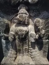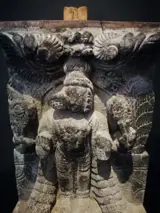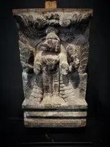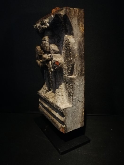 Deze sculptuur maakte deel uit van een tempelkar, welke met dergelijke panelen werd gedecoreerd, en éénmaal per jaar ter ere van de godheid van de tempel, in het dorp werd rondgetrokken. Ze is in originele staat en werd (nog) niet gereinigd.