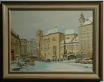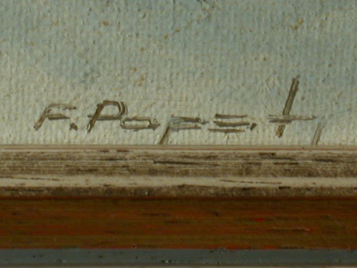 Olieverfschilderij op doek geschilderd rond 1960-70 door de kunstenaar, geboren in Roemenië in 1915, actief in Wenen; Filip Paus. Het beeldformaat van het schilderij komt uit op 40,5 cm x 30,5 cm, met lijst 48 cm x 38 cm. Het schilderij verkeert in een leeftijdsgebonden vrij goede originele staat.