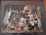 Prachtig mixed media werk uit 1980 met onherkenbaar schrift in de linker benedenhoek in een prachtige houten lijst