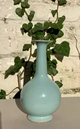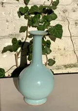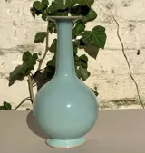 Porseleinen Flesvaas met licht Celadon glazuur.