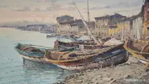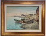 De "Jachthaven"", door Francesco Maria Pieri (Castagneto Carducci 1941 - Livorno 1989). 50 X 70 canvas zonder glas. Werk gesigneerd op de voor- en achterkant. Het komt uit mijn persoonlijke verzameling. Echt een meesterwerk...de beste F. M. Pieri ooit. Mooi kader