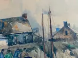 Schitterende en enorme aquarel en houtskool/pastel op papier gesigneerd linksonder