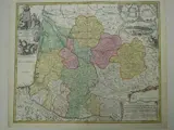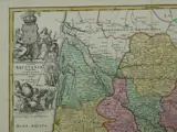 Kopergravure gepubliceerd in "Atlas Geographicus Maior exhibens Tellurem seu Globum Terraqueum in mappis generalibus et specialibus per J.B. Homann ejusque Heredes editis". Neurenberg 1746.