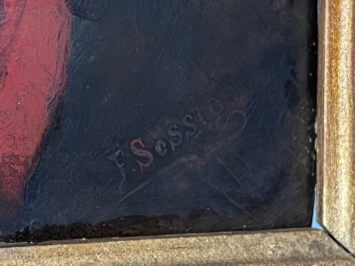 Ik bied ter veiling een zeer fijn gedetailleerd 19e-eeuws olieverf op paneel van een vrouw met een rode sjaal, van de Duitse kunstenaar Franz Carl Sessig, 1854-1914. Gesigneerd rechtsonder. In een indrukwekkende zware lijst.