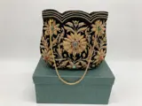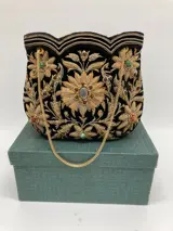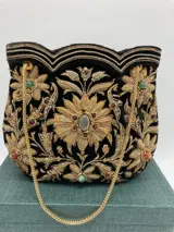 Zeer elegante dameshandtas geborduurd met prachtige sieraden en bloemen.