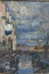 Werk uit 1942 van de Napolitaanse meester Gennaro Villani zeer zeldzaam en collector's omdat het werd gemaakt op een ansichtkaart die naar een van zijn familieleden was gestuurd