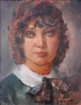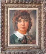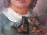 Oud groot formaat olieverf op canvas schilderij, met de hand gesigneerd door Georgette Nivert bekend om haar portretten.