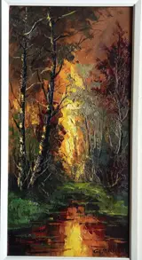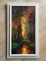 Fraai olieverf op doek met als voorstelling een Boslandschap met beekje.