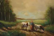 Leuke naturalistische voorstelling van de Rotterdamse kunstschilder Gerrit van Jeveren , l.o. gesigneerd