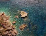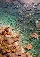 Het schilderij is op hout en meet 37x29 cm en stelt een transparante zee voor