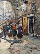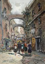 Het schilderij stelt een straat in Napels voor en is van de schilder Giulio De Simone.