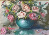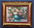 Kostbare en boeiende pastel van de kunstenaar Giuseppe Cocco gemaakt in de vroege jaren vijftig en met een aangename bloemencompositie met een vaas met rozen erin van uitstekende artistieke weergave