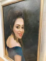 Schilderij gemaakt in olieverf op canvas, door de kunstenaar Giuseppe Colonello geboren in Udine in. Woonde in Napels, gereserveerde en veelzijdige kunstenaar, landschaps- en figuratief schilder, gepassioneerd door vrouwelijke figuren geïnspireerd door de belle epoque, vooral soubrettes. Dit schilderij van een mooi jong model genaamd Gerardina, met een intense picturale uitdrukking, lijkt de toeschouwer te observeren, een magisch gevoel dat in staat is tot een goed artistiek resultaat. Meet 70-50 cm met het evenwijdige frame dat als eerbetoon moet worden beschouwd, meet 87-67 cm. Certificering van authenticiteit en herkomst met foto gestempeld en ondertekend door een deskundige expert. Zorgvuldige en aangetekende verzending
