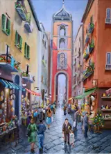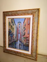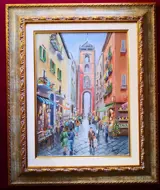 Prachtige olieverf op doek van 30 x 40, van de meester Giuseppe Luongo. Door de karakteristieke straat van de kerststallen van Napels (S. Gregorio Armeno) uit te beelden met personages en scènes uit het Napolitaanse volksleven, is de uitstekende picturale kwaliteit erg mooi. Onderaan en op de achterkant gesigneerd door de schilder.
