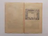 Brede marges. In de marge onder scheurtje op middenvouw en twee kleine gaatjes (ver buiten kaartbeeld). Verso: Duitse tekst en houtsneden.