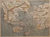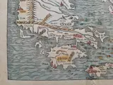 Handgekleurde houtsnede, uitgegeven te Basel door Heinrich Petri in 'Cosmographei,' Sebastian Münster.