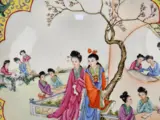 Grote schotel (1) - Porselein - Ladies in the garden (Famille Rose) - China - Midden 20e eeuw