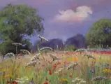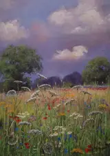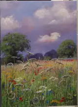 Het schilderij toont een weiland op het platteland achter de boerderij van mevr. Aneta Grabowo Polen Mooi werk. ik raad aan