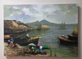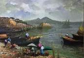 Olieverf op doek van de Napolitaanse meester Guido vuotto, een veelgevraagd schilder op Europees niveau vanwege zijn vermogen om de zeekusten en de mooiste dorpen van Italië op tabletten te brengen. Titel van de Opera marina dimergellina (Napels) totale afmeting 50X35 cm.