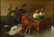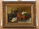 Een stilleven is een artistieke compositie (schilderij, tekening, foto) van roerloze of levenloze objecten, die met zorg zijn belicht, wat hier heel mooi is gelukt. Met het schilderen van een stilleven kan een schilder zich concentreren op de compositie, het gebruik van kleur en toonwaarde en het vloeiende onderscheid in kleurnuances tussen de lichtste en donkerste partij. Een stilleven is een studiewerk of proefstuk voor de virtuositeit van de schilder waarbij deze schilder zeker is geslaagd.