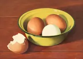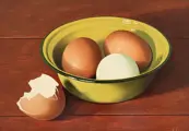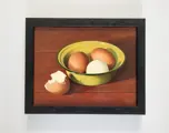Stilleven met schaaltje met eieren gesigneerd met AB.
