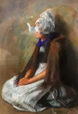Hollandse school (XX) - Zeeuws meisje op haar knieen