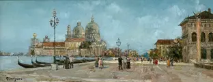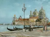 - Escapade à Venise - olieverf op paneel, gesigneerd linksonder.