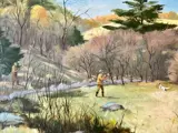 Schitterende illustratie in gemengde techniek uit de jaren '40/'50 van opmerkelijke kwaliteit en interessant voor verzamelaars