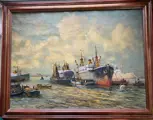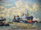 In redelijke staat met wat sporen van ouderdom zie foto’s doek br 80cm hg60cm houten lijst eigen collectie geen documenten of schade kosten koper postnl dubbel karton extra informatie oud schilderij met veel bedrijvigheid het schilderij heeft wat ouderdomsverschijnselen zie foto’s