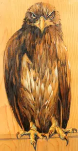 Dierenschilder Jacques Nam had voornamelijk katten geschilderd. Maar daar had hij veel andere dieren geschilderd, zoals panters of leeuwen. De door Jacques Nam geschilderde adelaars maken deel uit van de realisaties vóór 1920 (Hier 1914). Zijn stijl ligt dan dicht bij zijn tijdgenoot Paul Jouve (1878-1973): assertief en vol energie. Een favoriet.
