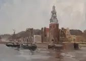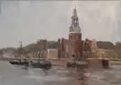 Een prachtig werk van Jan Kelderman geboren in Edam en overleden in Amsterdam Was handelaar en kunstschilder en staat vermeld in de scheen de bijbel voor de kunstenaars Hij heeft stillevens en zee gezichten geschilderd en vele stadsgezichten op zijn geheel eigen impressionistische wijze geschilderd