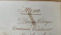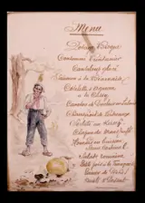 Aquarelmenuproject getiteld Le Gland et La Citrouille naar de fabel van La Fontaine.