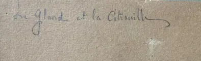 Het is waarschijnlijk een aquarelproject van Jan Lis (?), bestemd voor de graveur Moïse Stern voor het drukken van een menu geïnspireerd op de fabel van La Fontaine aan het einde van de 19e eeuw.
