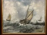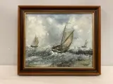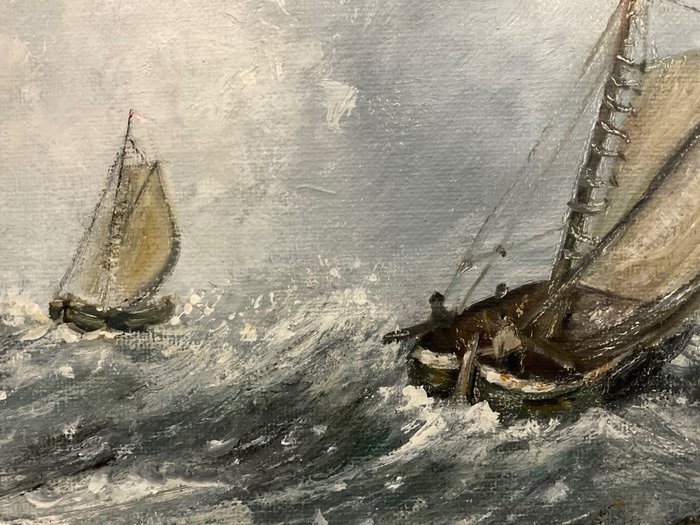 Aangeboden: mooi olieverfschilderij op doek van J. Zwaan; Zeilboten op de golven.