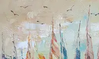 Schilderij zonder lijst, de zijkanten zijn mee geschilderd.