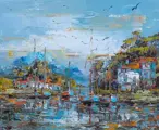 Acryl schilderij op doek gemonteerd op houten brancard, gesigneerd door de kunstenaar. Janusz Kik is een hedendaagse schilder; geboren in Polen, woont in Frankrijk (en werkt soms in Polen), ingeschreven bij het ‘Maison des Artistes’.