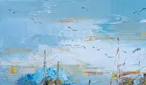 Schilderij zonder lijst, de zijkanten zijn mee geschilderd.