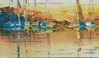 Acryl schilderij op doek gemonteerd op houten brancard, gesigneerd door de kunstenaar. Janusz Kik is een hedendaagse schilder; geboren in Polen, woont in Frankrijk (en werkt soms in Polen), ingeschreven bij het ‘Maison des Artistes’.