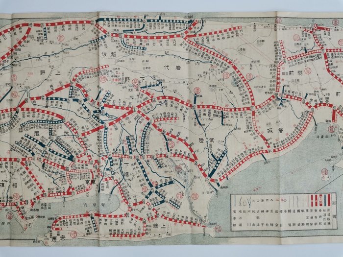 Spoorwegroutekaart gepubliceerd in 1920, toont gedetailleerde stationsnamen van Sakhalin, Japan en Taiwan meer dan 100 jaar geleden.