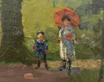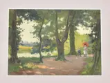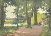 Johannes (Han) Krug (1890-1977) - A stroll in the woods - 1917 - Oil on thin board. Signed and dated below right. 20,5 x 28. 5 cm. Mounted in modern passepartout.