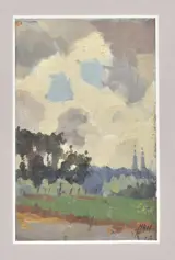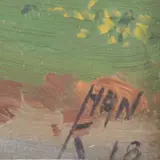 Johannes (Han) Krug (1890-1977) - Landscape - 1918 - Oil on thin board. Signed and dated below right. 13,5 x 8. 5 cm. Mounted in modern passepartout.