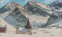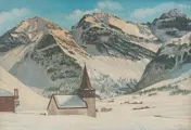 De winterfoto toont de Sertig-vallei bij Davos in Zwitserland,