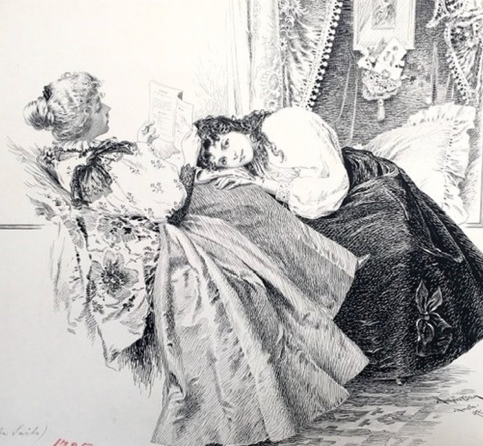 Zijn fijne inktwerk toont de precessie in zijn detail en een levendige illustratie van de mode van zijn tijd.