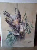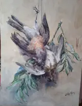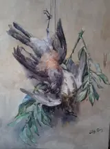 Stilleven met vogel van de Franse kunstenares Juliette Goury, geboren in 1878 en overleden in 1954, bekend om haar aquarellen.