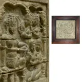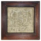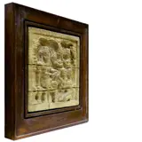Op de achterzijde een document (certificaat) met de info over het reliëf. Grootte van totaal 22x22x2cm het enige stenen paneel meet 14,5x14,5cm. Het is een echt mooi stuk gesneden uit kalksteen in hoge kwaliteit. Geen beschadigingen aan de steen wat uniek is...