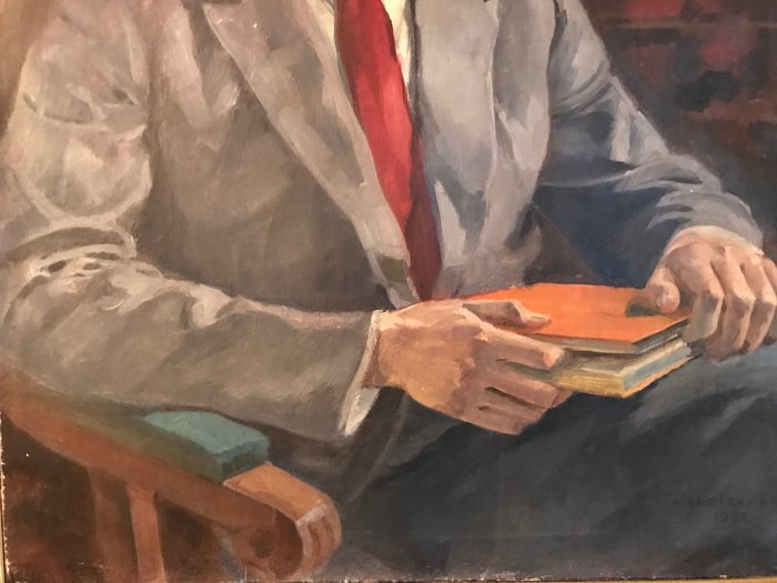 Karl Endtresser 1903-1978- Portret in de stijl van de nieuwe Sachlichkeit " Eduard Pernkopf" österrr. Een atoom