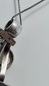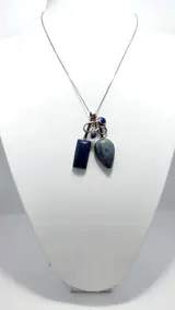 Bijzonder collier met hanger in 925 zilver uit de Inca beschavingen, met grote natuurlijke lapis lazuli cabochon van extra kwaliteit met gouden insluitsels.