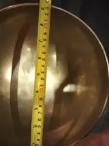 Schitterende handgeslagen bel in Nepal, uniek stuk. Fantastisch helder geluid. diameter 24 cm toon LaH2 120 Hz Geleverd met steun en klepel. Nieuwe uitstekende staat