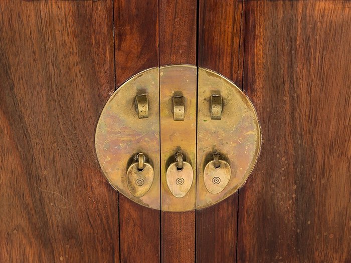 Elke lade is bevestigd met metalen ronde panelen, compleet met ruyi-handgrepen en sloten