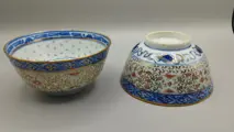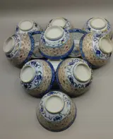 Ze hebben allemaal hetzelfde patroon, maar ze verschillen allemaal van elkaar. Hand geschilderd.
